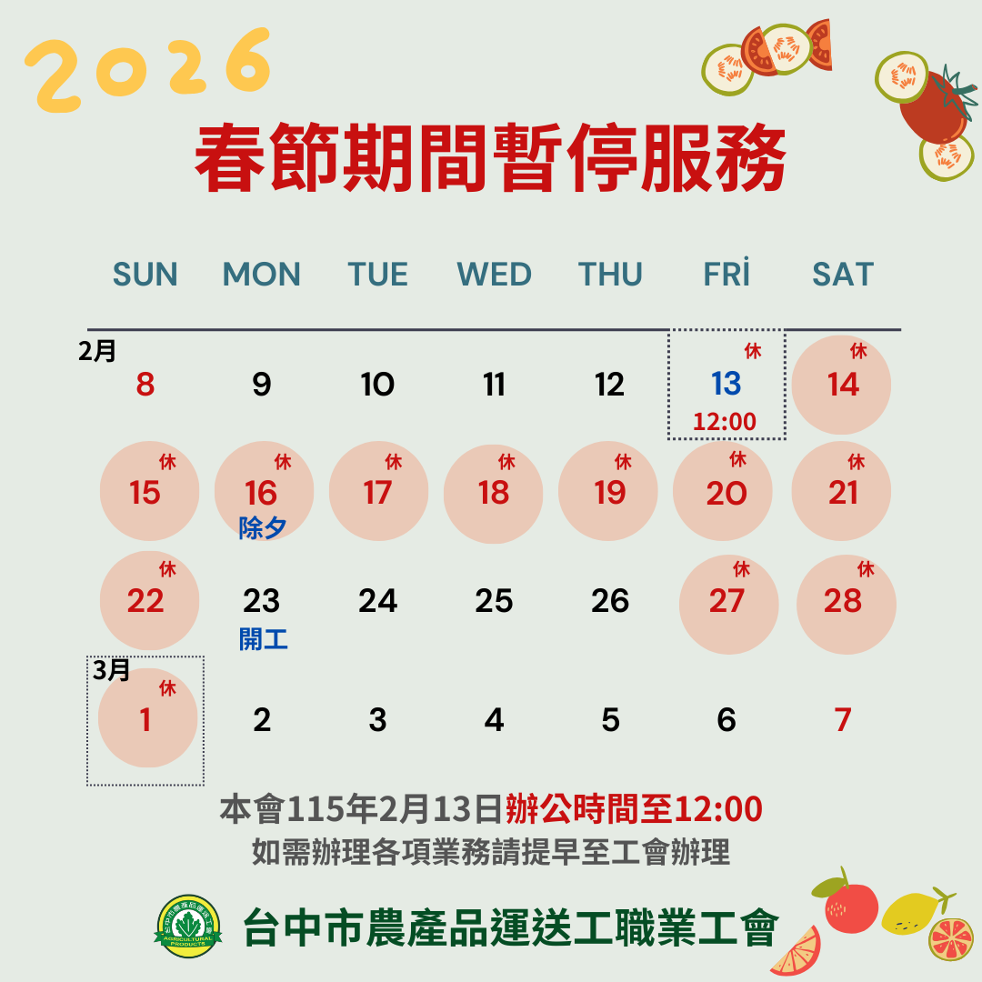 ※ 本會專為從事農產品運送工的工作人員們設置 如從事運送地、市場買賣地運送農產品 誠擎的邀請您加入台中市農產品運送工職業工會會員 ※