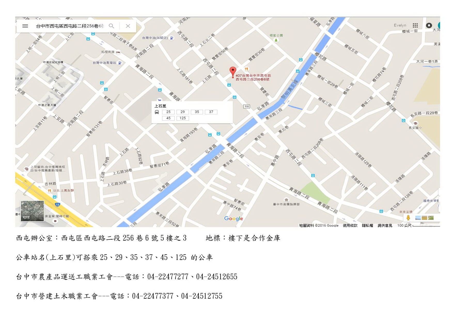 本次是在西屯辦公室領取,請大家不要跑到昌平路領取 西屯辦公室地址:台中市西屯區西屯路二段256巷6號5樓之3 電話:04-22477277、04-24512655 公車站牌:上石里 可搭乘公車:25、29、35、37、45、125 工會大樓前方有一個收費停車場 開車的會員也很方便 附上公文及地圖相關資訊還有禮品相片讓大家參考唷!