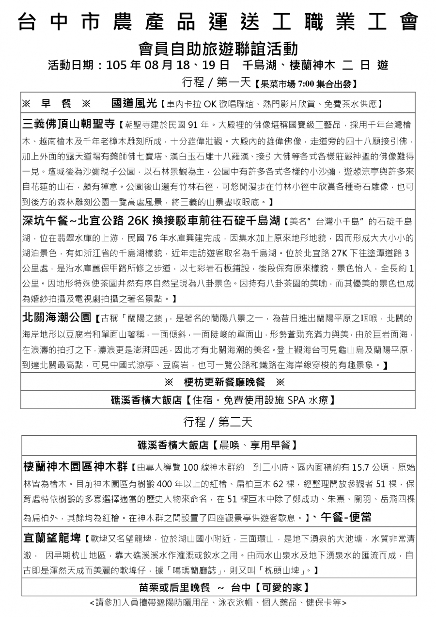 此為第一梯次會員自助旅遊方案二,供大家參考,自由選擇報名唷!