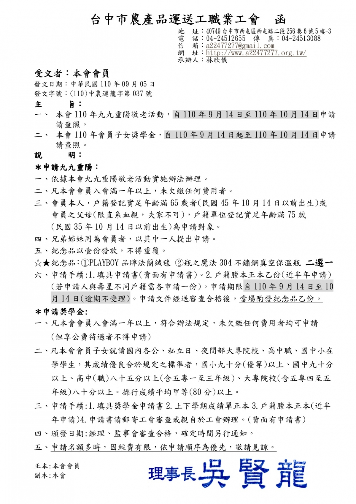 110度子女獎學金申請活動來囉!!!