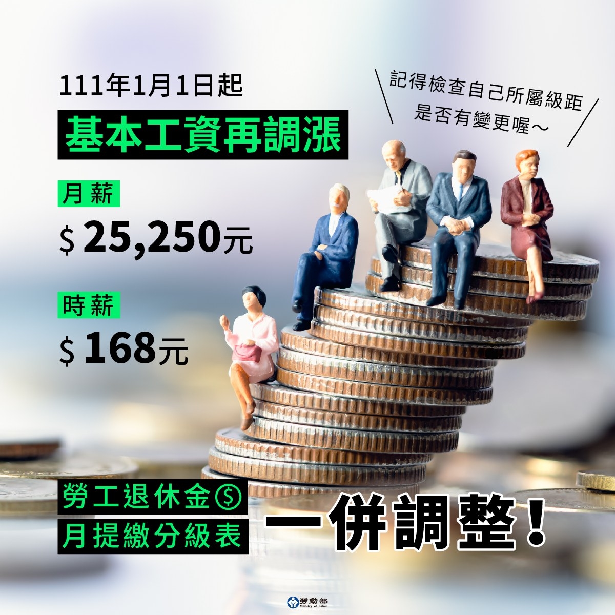#月薪 由新臺幣24,000元調整至25,250元!