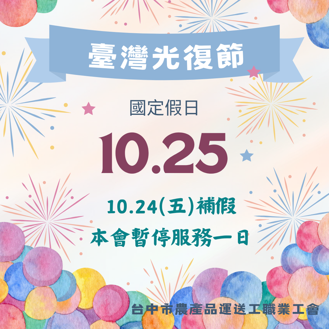 10/24(五)為光復節補假,本會暫停服務一日